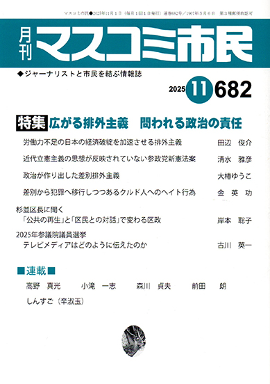 特集は「広がる排外主義 問われる政治の責任」